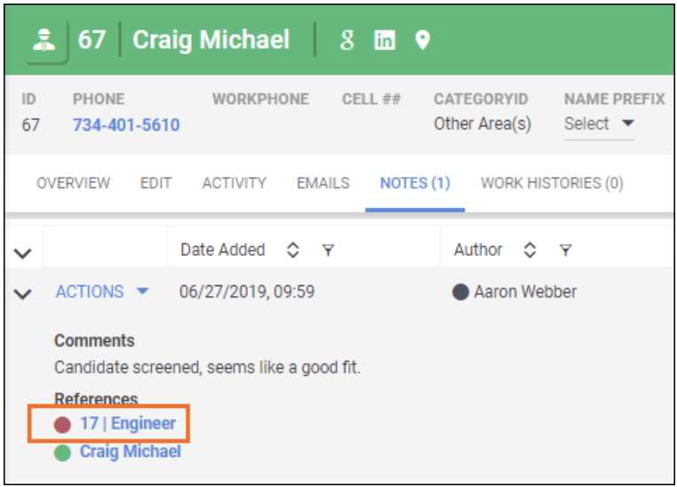 • Job References on Notes Display Job ID: The Job ID will now be displayed next to the Job title when referenced on a Note, which is beneficial for recruiters filling multiple jobs with the same title.