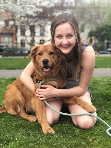Walking my one-year-old Aussie/Golden Retriever puppy, Brady, around the Esplanade