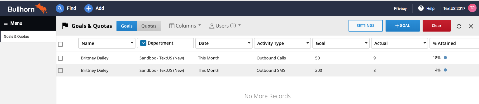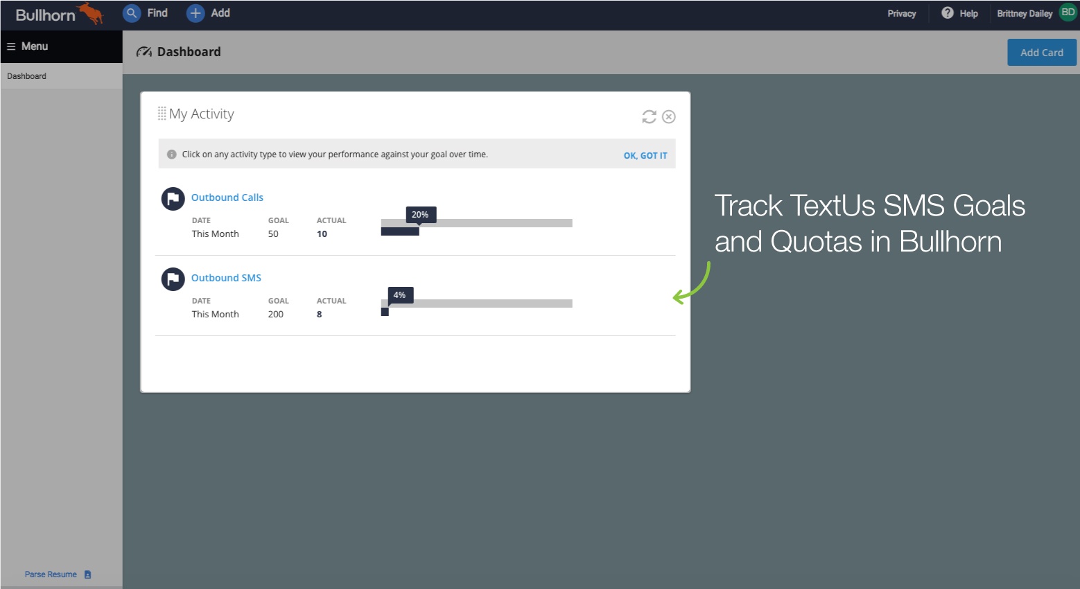 How to Track TextUs SMS Goals and Quotas in Bullhorn to Drive Better Communication