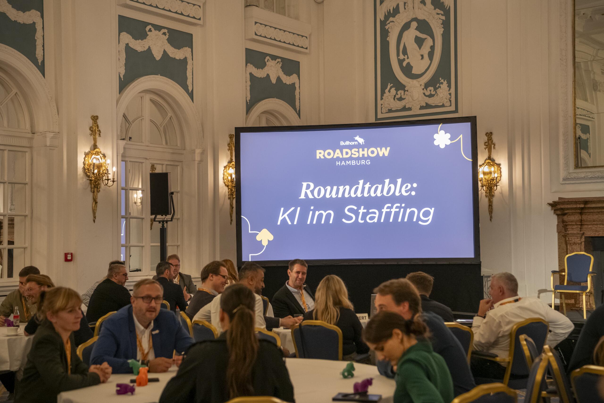 Das Format Roundtable zum Thema KI im Staffing brachte Bewegung in die Roadshow. Branchenkolleg:innen und Expert:innen diskutierten brennende und aktuelle Fragen rund um das Thema KI in der Personaldienstleistung. Ihr Fazit: Künstliche Intelligenz ist nützlich – hat aber auch ihre Tücken. Strategie und Know-how sind hier wichtige Zutaten, um erfolgreich zu sein. Und: Der persönliche Kontakt ist und bleibt das A und O.