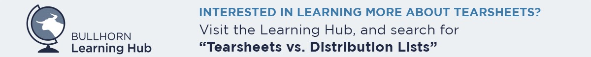 With so much data in Bullhorn, organizing it and creating a streamlined view of your records is important in ensuring you are working efficiently within the system. Tearsheets are used to group candidates, contacts, or jobs based on defined criteria, such as candidates being targeted for a particular job or contacts that you haven’t spoken to in a while.