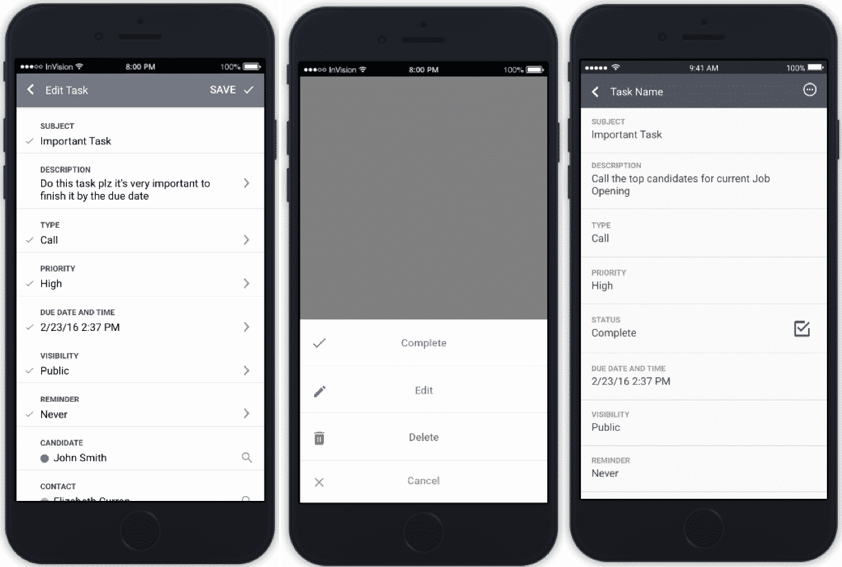 Being away from your desk, especially if you have a travel-heavy schedule, can make it difficult to keep your tasks organized. Bullhorn Mobile supports adding and editing your Bullhorn Tasks. This functionality helps you stay organized without it impeding your ability to successfully make placements.