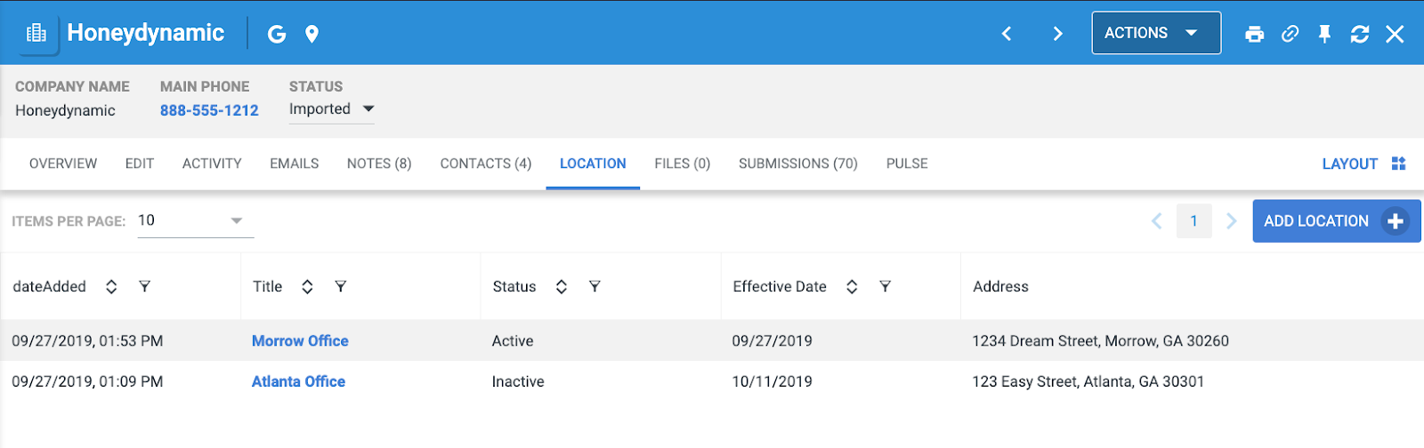 Locations provide an even greater level of organization when managing addresses for new Companies, Jobs, and Placements, which ultimately reduces the likelihood of errors that can occur in tracking this information. The Locations feature allows users to save Locations to a Company record, with information flowing to Jobs and Placements. This will allow users to create and manage multiple locations for a single client, whether they are active worksites or offices.