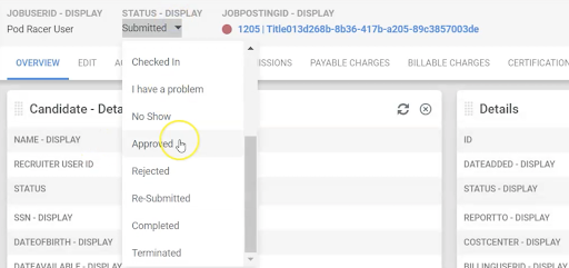 • Approved Option in Placement Header: The Placement Status field in the Placement header section will now display the Approve option as expected for entitled users.