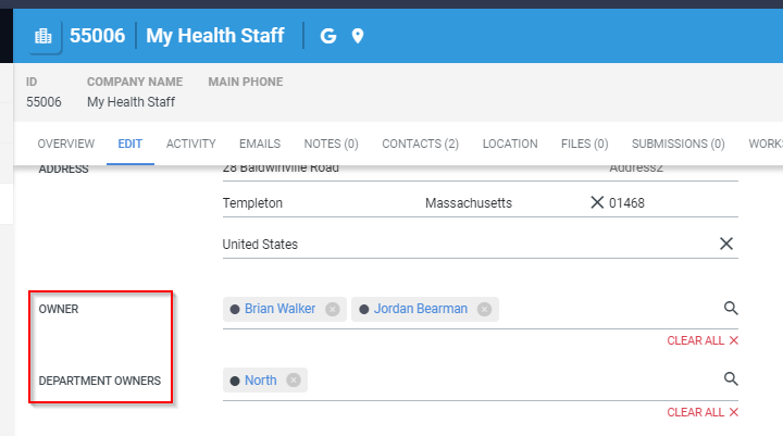 • Company Ownership Feature: We have introduced a ‘Company Ownership’ feature that allows users to assign owners to Company Records. We’ve also introduced a new owner type, ‘Department Owner,’ on both Company and Contact records.