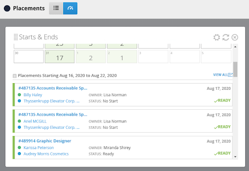 - Placement Starts and Ends: We have resolved a big so that the Placements Starts and Ends dashboard card will now correctly show and link to Placements instead of Jobs.