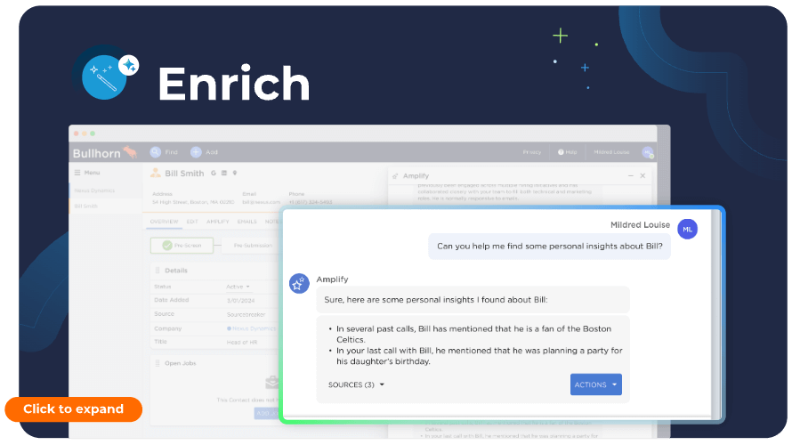 Bullhorn’s enrichment tools scan resumes, job posts, and profiles to instantly update and enhance your CRM.