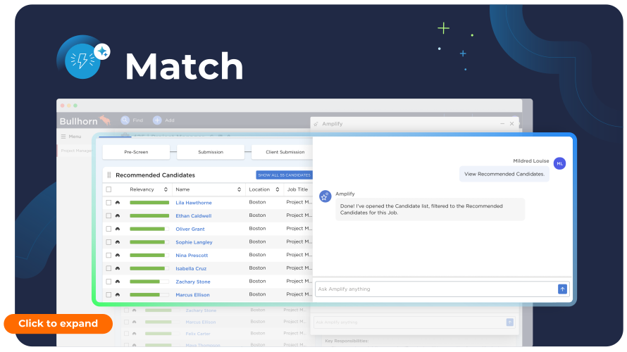 Find the right fit—faster. Amplify takes the guesswork out of matching, helping you connect candidates to roles with speed and precision.