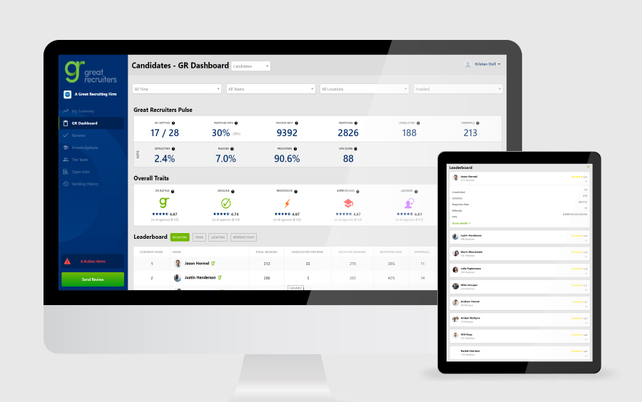 The automated review process captures real-time feedback and helps you measure your team’s performance and take immediate action when problems arise. With Great Recruiters, you gain insight into how recruiters and sales teams are performing from the candidate’s perspective.