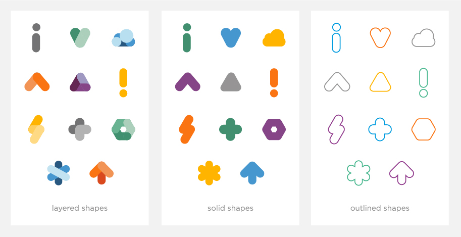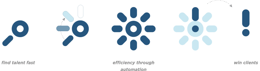 De werving & selectie, detachering en uitzendbureaus waren onze inspiratie. Het hielp ons te focussen en de juiste beslissing te nemen over welke vormen het beste passen bij Bullhorn en de recruitment industrie. Elke vorm heeft een specifieke betekenis en manier waarop het gebruikt wordt.