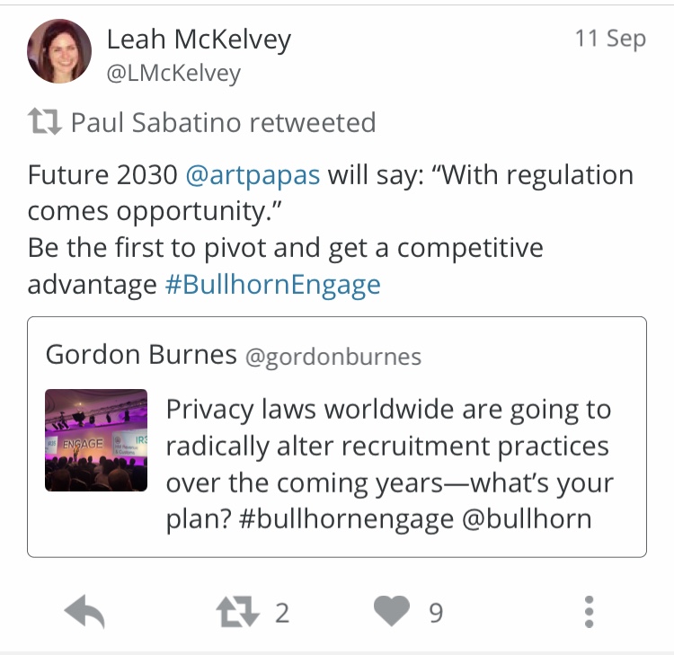 “ “Wees niet bang voor regelgeving!” benadrukte Art. Met de voortdurende ontwikkeling van technologieën zoals Alexa en Google Home, zal privacy een belangrijke prioriteit blijven. Het zal steeds moeilijker worden om iemand te benaderen met wie je geen contact hebt om ze te werven als kandidaat of klant, zonder dat je daarbij in strijd bent met de wetgeving. Maar ondanks wat moeilijkheden in het begin, zorgt naleving voor een ‘vlak speelveld’.