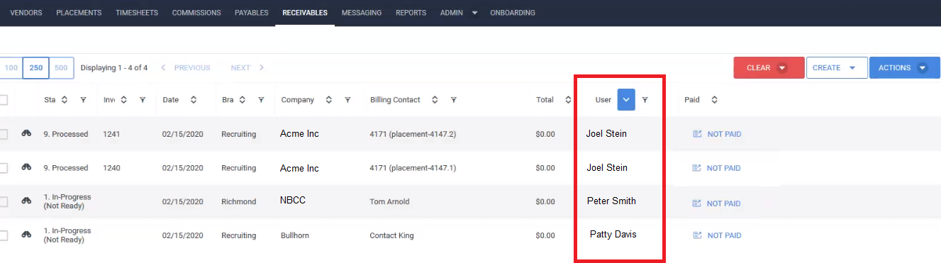 - View Candidate Name on Receivables Tab: Candidate Name will now appear on the Receivables tab, increasing visibility into your Back Office records.