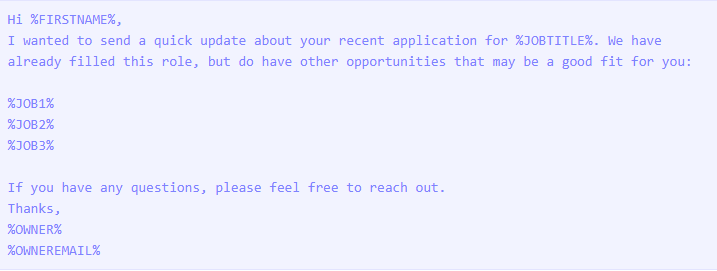 3. Status updates to candidates as they move through the hiring process or are rejected