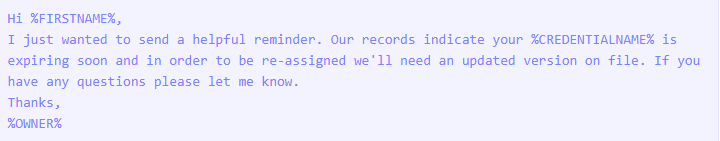 This is a big one for certain industries, especially healthcare. Automatically send an email to a candidate one month before expiring credentials and every week until new credentials have been received.