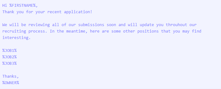 Maybe your client is slow to getting back to you and there hasn’t been any progress for a req. Well, if there hasn’t been a note or profile update in a time period, say two weeks, you can automatically send a follow-up email to the candidate as a courtesy.