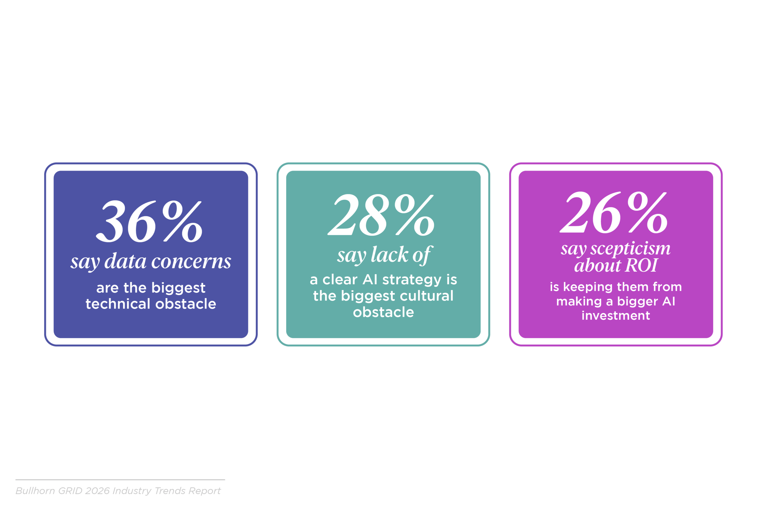 Data and security concerns are top of mind for recruitment leaders with respect to AI. And these concerns stand in the way of full adoption of the technology. Agencies need to work with partners that can help them address these foundational concerns to get the most out of AI.