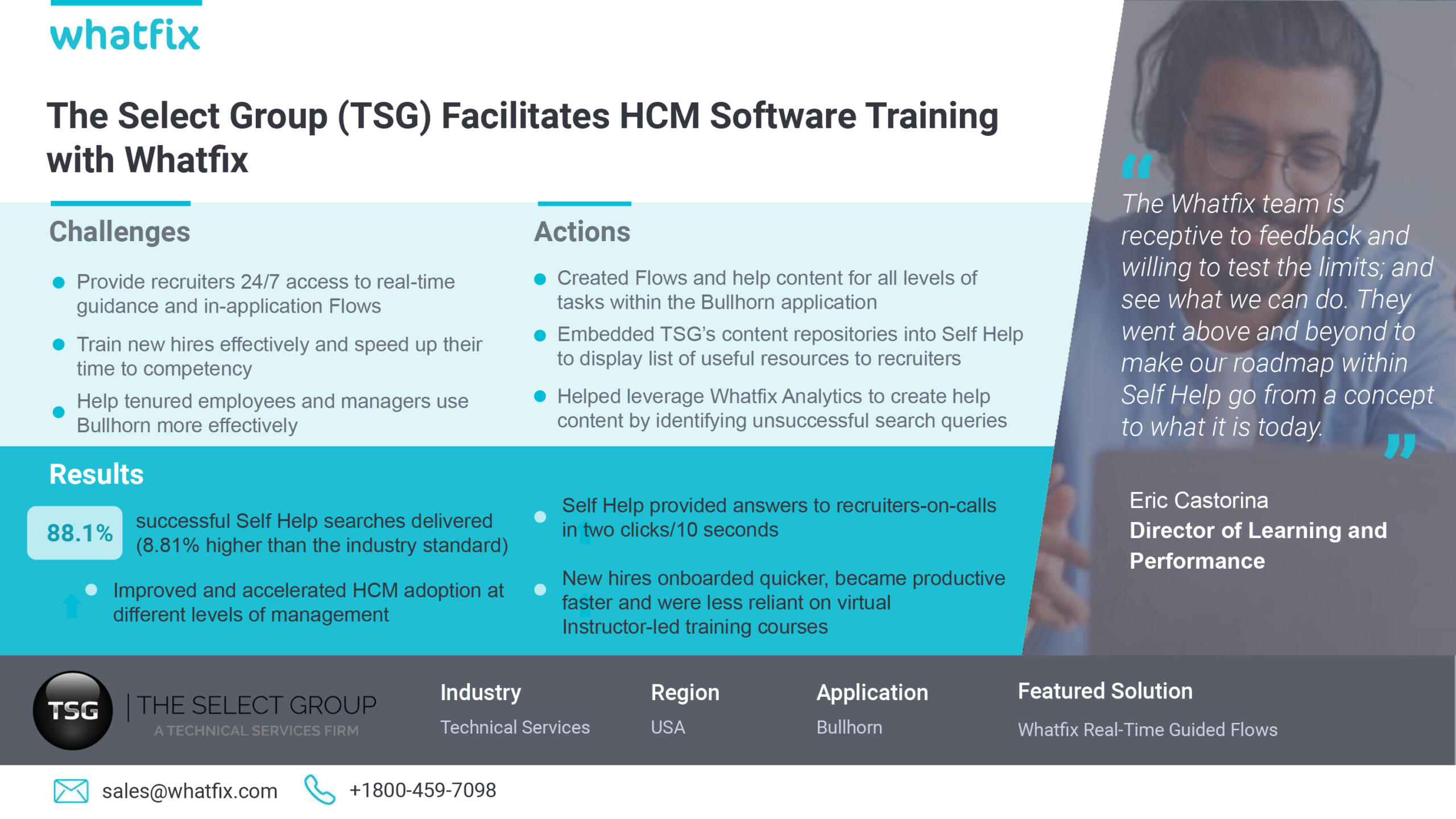 The Whatfix team is receptive to feedback and willing to test the limits; and see what we can do. They went above and beyond to make our roadmap within Self Help go from a concept to what it is today.
